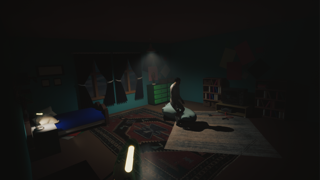 When playtesters played through this level, I was happy to see just how well the jumpscare worked. The closed off space of the bedroom made testers very active in their search for details.