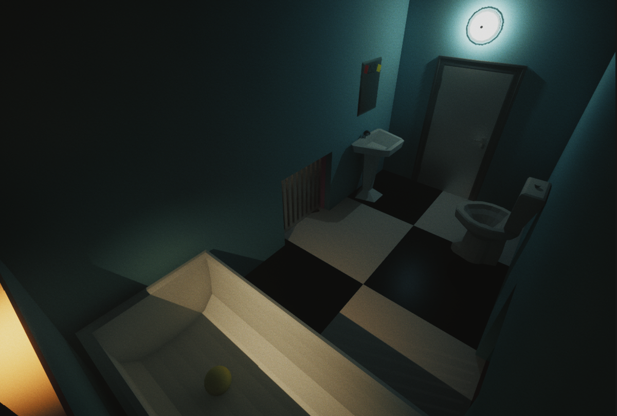 So, fairly late on, I flipped the entire room 180 degrees, so that you saw the door directly as you came up from the stairs. This was breaking a few of the rules of floorplans I’d studied, but was something necessary to the gameplay loop.