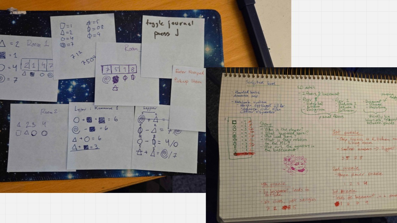 For the Scripted Level Assignment, we were instructed to make more advanced systems. One of these systems for me was to take the physical act of writing down clues into the game itself.
