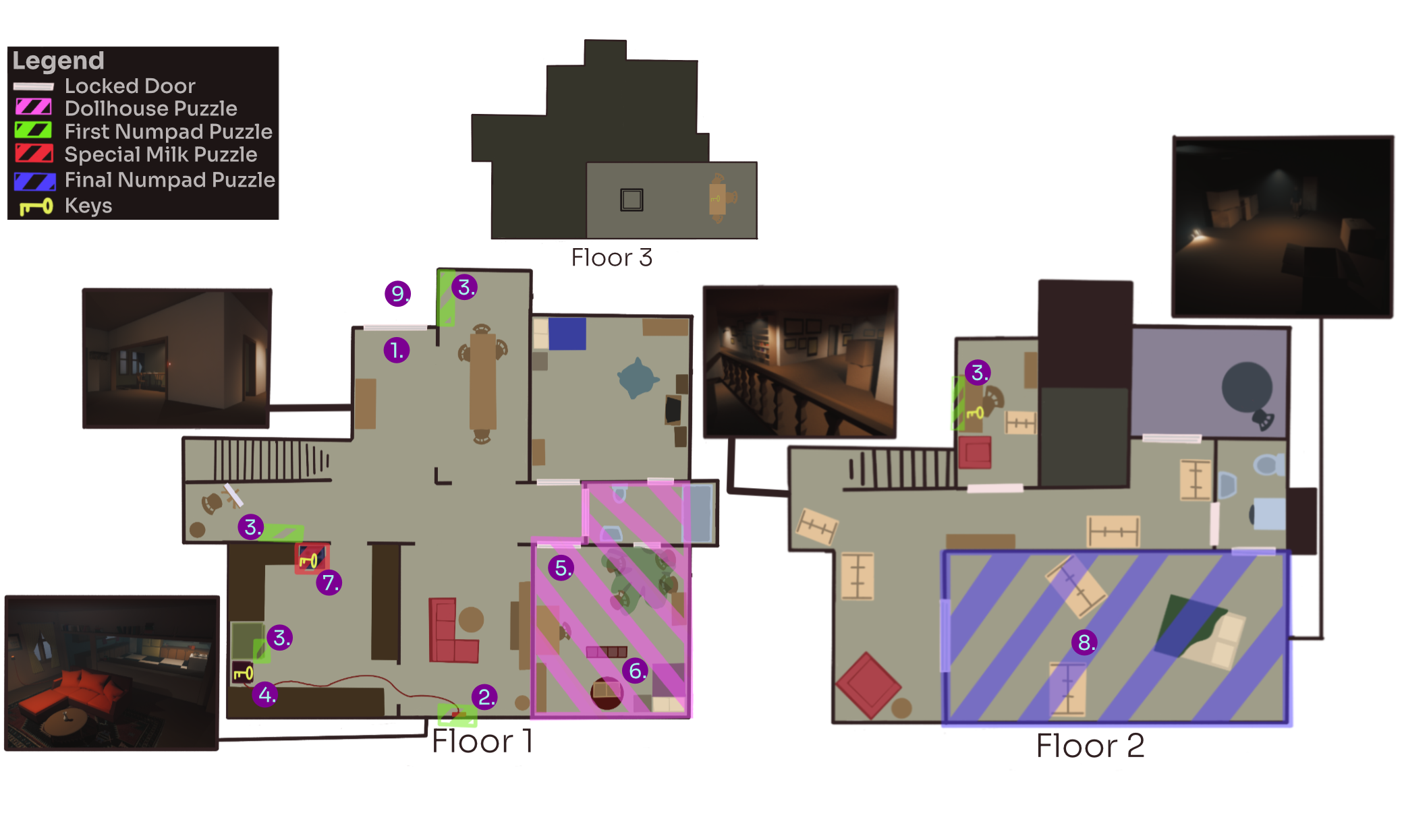 Originally, the numpad solution of the master bedroom was meant to unlock the front door. But, after some playtesting, I realized two things;